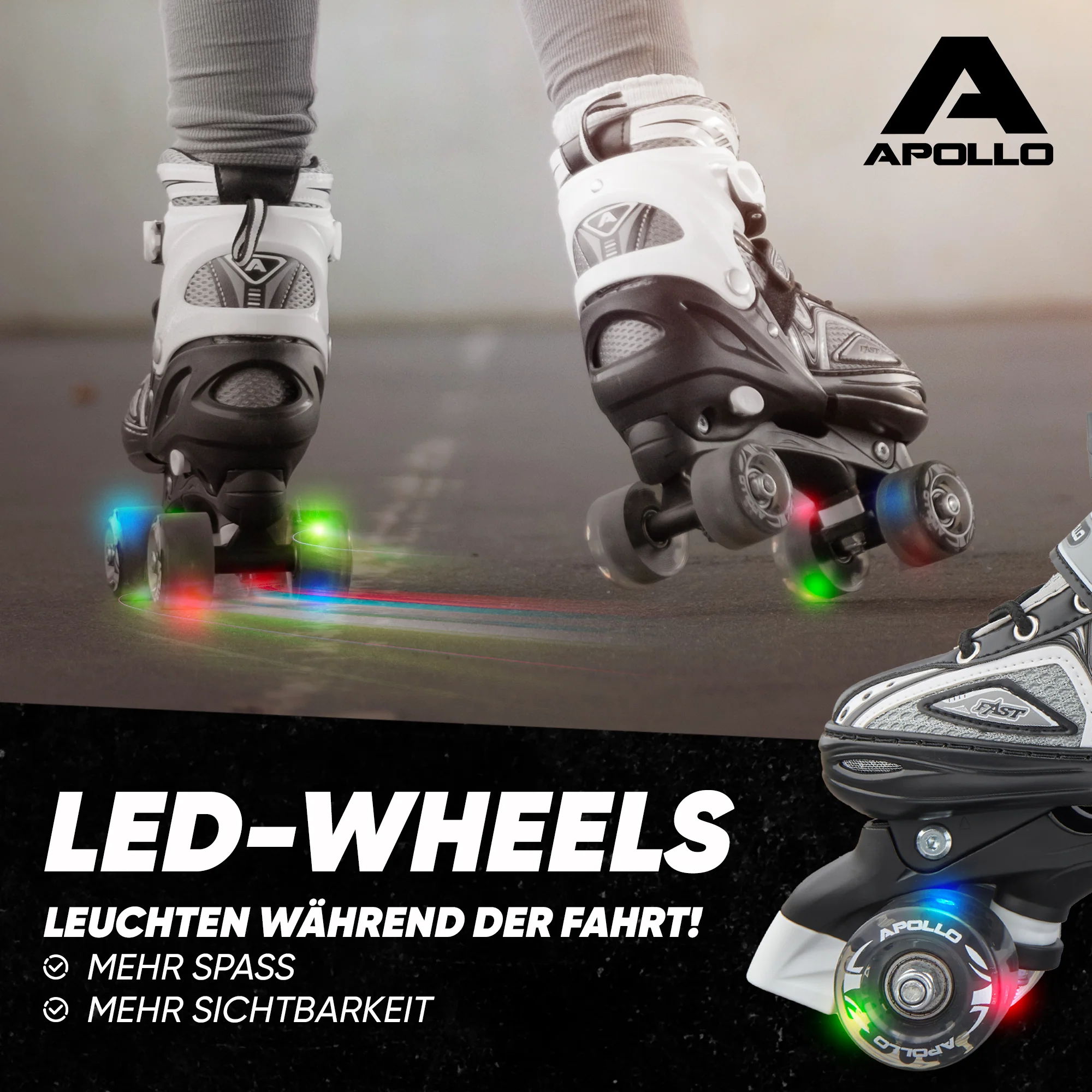 MARKENPRODUKT: Apollo Super Quads X Pro Skates - cooles Design, LED Wheels und optimale Fahreigenschaften durch High-Rebound-Rollen (54 mm x 32 mm) und ABEC 7 Kugellager